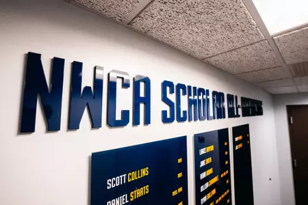 The WVU Wrestling Pavilion provides the West Virginia University wrestling program with four mats, coaching offices, an aerobic room, a study center with computers, and an athletes' lounge.
